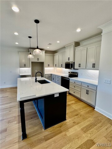 New construction in popular Grand Pointe! Featuring 3 bedrooms and 2.5 baths, this home has an open kitchen/living/dining/breakfast area with all the extras. Custom cabinets and quartz counters throughout, stainless GE appliances, upgraded lighting and trim, real 5" oak hardwood, tile flooring, full brick exterior, privacy fenced backyard, 2 car garage, etc. Grand Pointe has a community pool, playground and gazebo area. This new home comes with a 1-year warranty.
